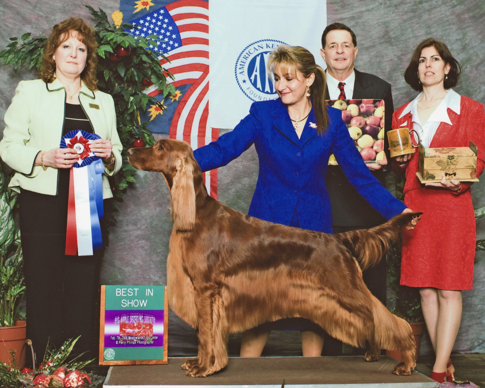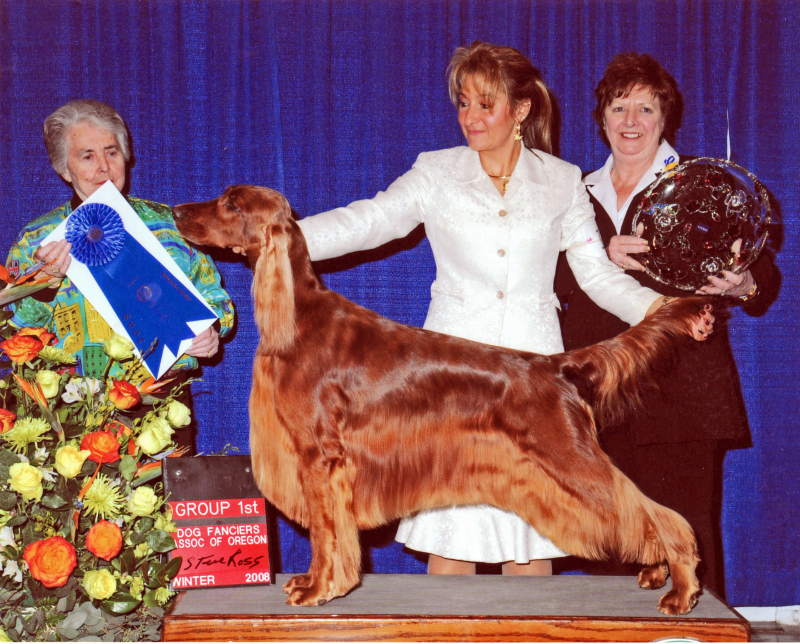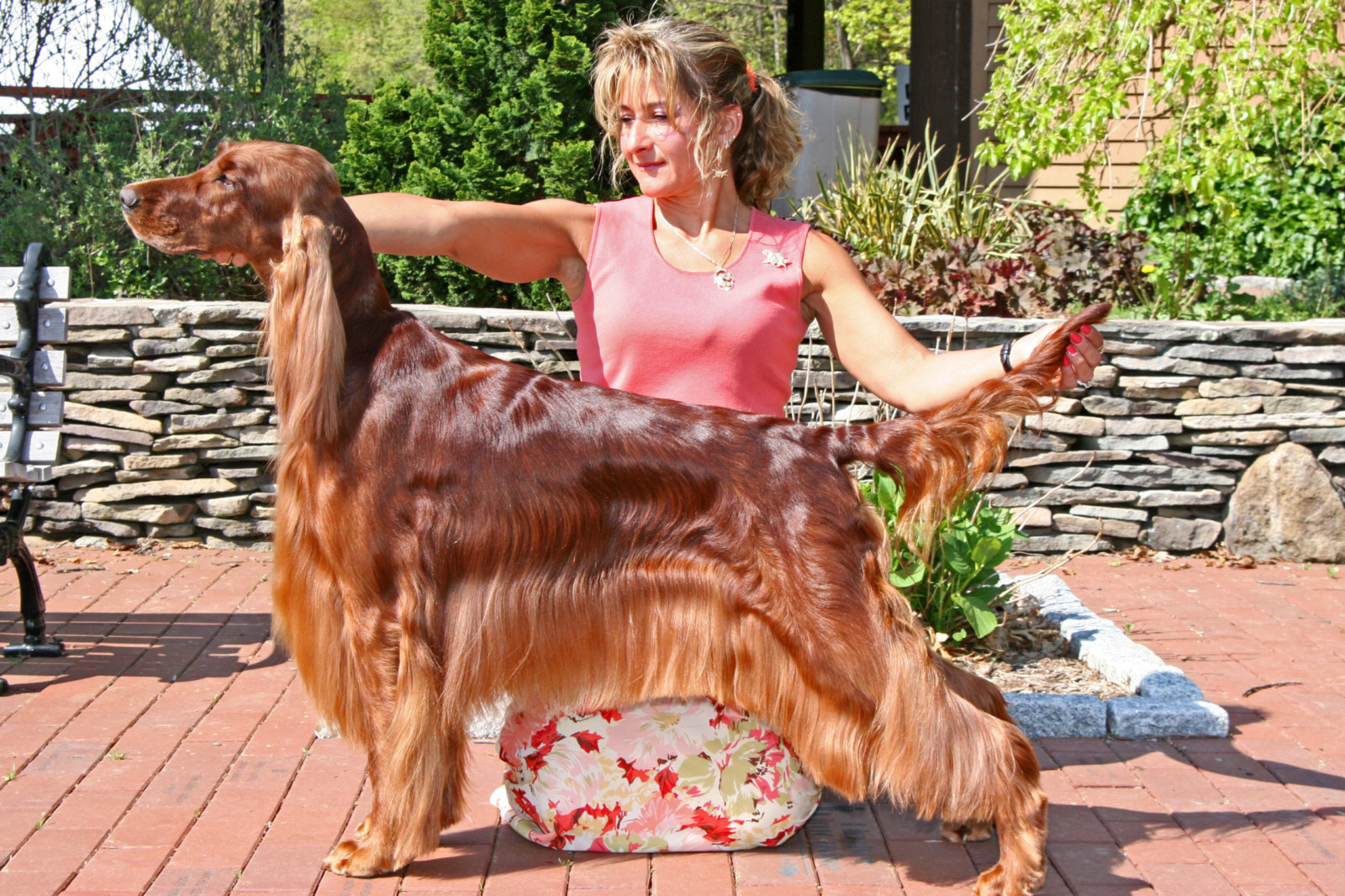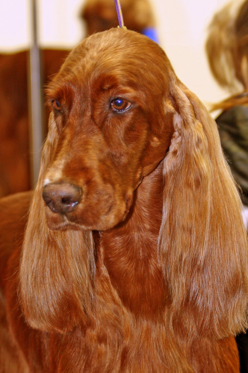 Eloise was our pride & joy. Part of the award winning Cable Litter. Our first home bred Best in Show winning Irish Setter. She was the top specialty winning Irish Setter bitch in history, exceeded only by her father Fonzie. She was the #1 Irish Setter All Systems in 2008 and the #6 Sporting Dog – acquiring over 20 group 1’s, over 41 group wins and 87 breed wins. She was an Award of Merit winner at the ISCA National in 2007, 2008 and 2009, as well as Westminster Kennel Club Award of Merit in 2008 & 2009. She was the winner of 7 Best in Shows and 39 Best in Specialty Shows! She was an exquisite animal with beautiful breed type, elegance, incredible reach & drive. She had body carriage & movement second to none carrying an extremely flat topline with her head & tail carried right where it should be. She was well angled, yet balanced with tremendous bone and substance for a bitch. She had beautiful chiseling that the breed lacks with accentuated, very expressive eye brow peaks that add to her lovely expression. She was a beautiful combination of her mother Emily and her father Fonzie. She had an incredible temperament, sweet as pie, but rollicking – gentle and loving. An absolute pleasure as a house dog. She is truly a sight to behold and must be seen in person to be truly appreciated. She had great showman attitude, enjoying being in the ring.