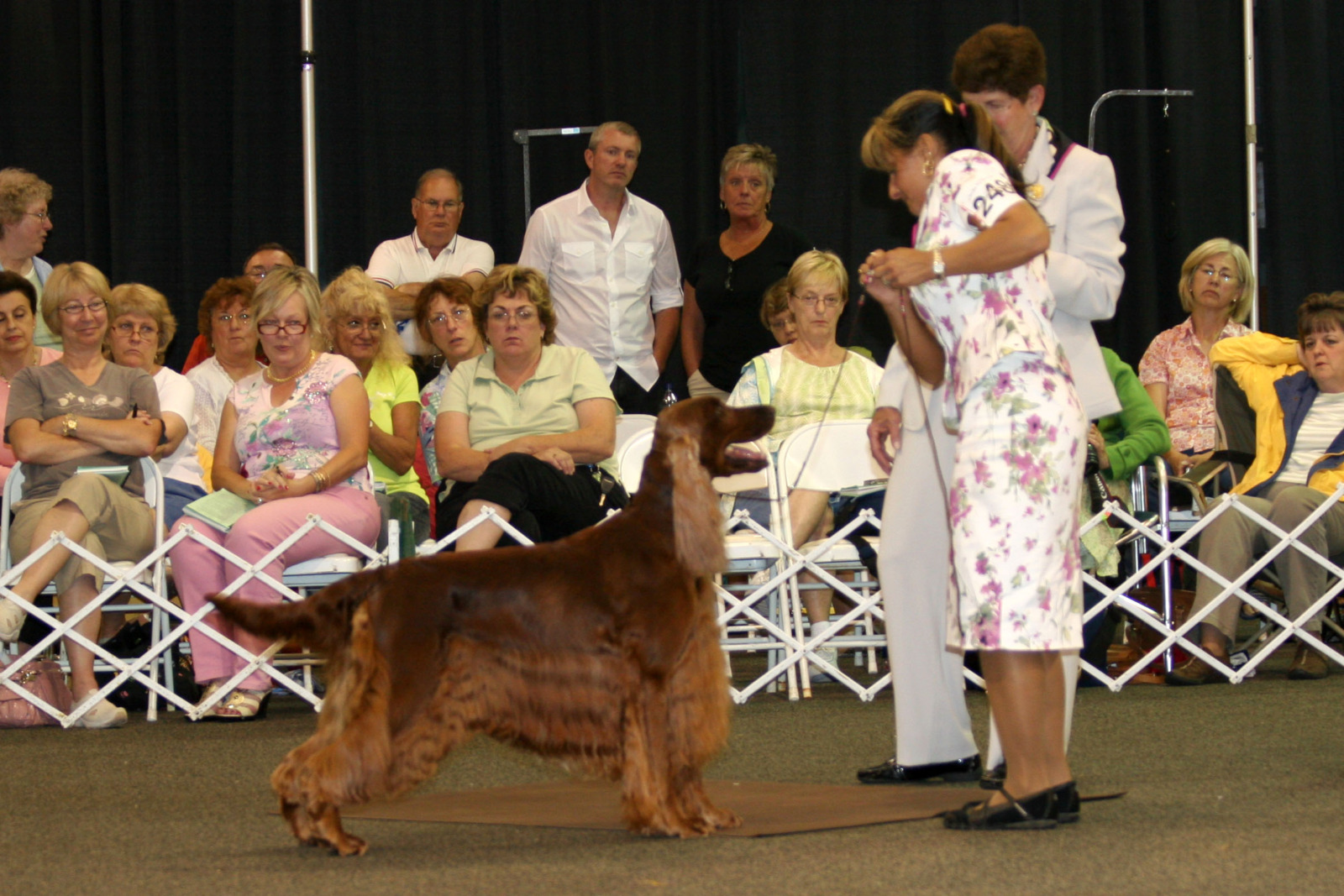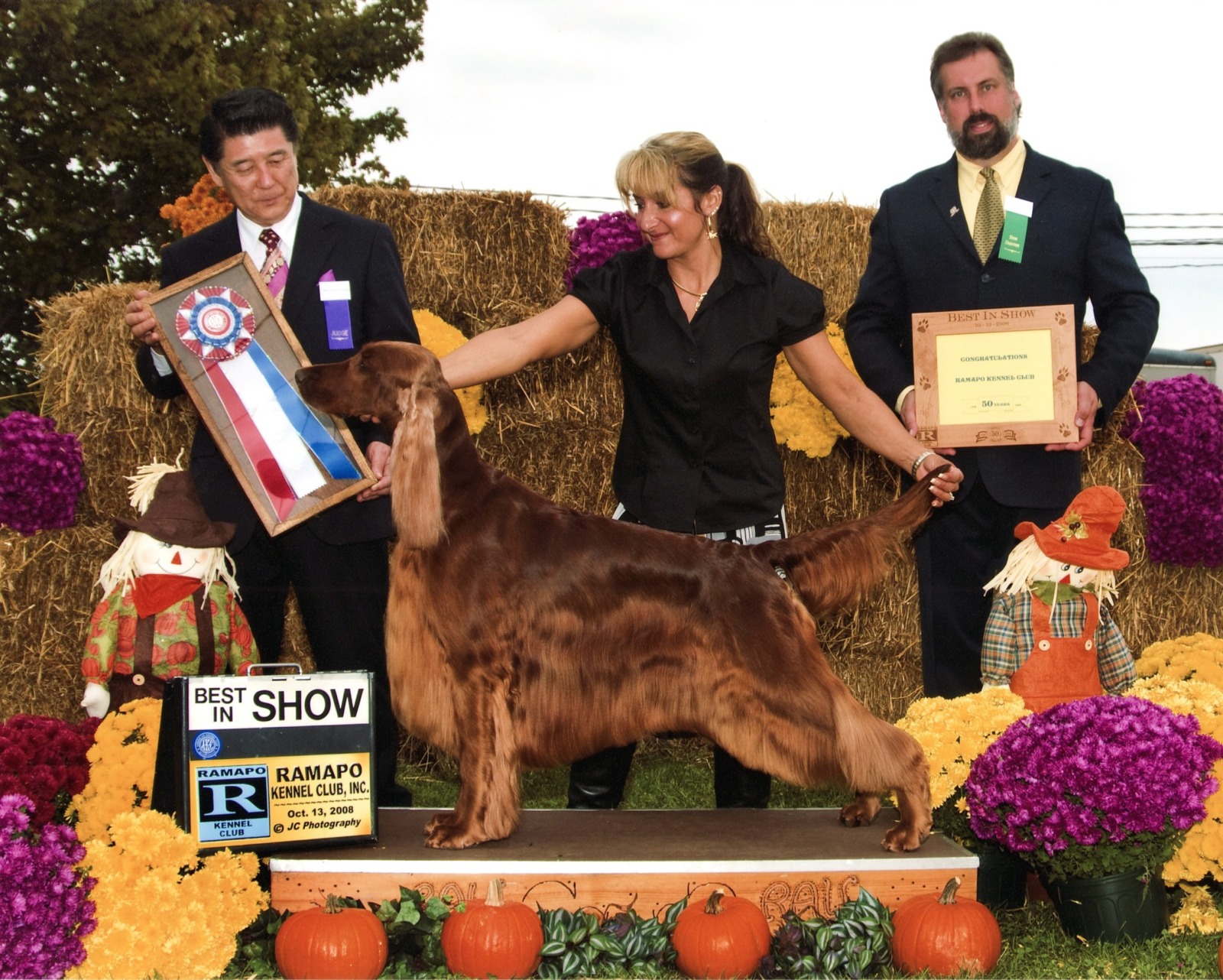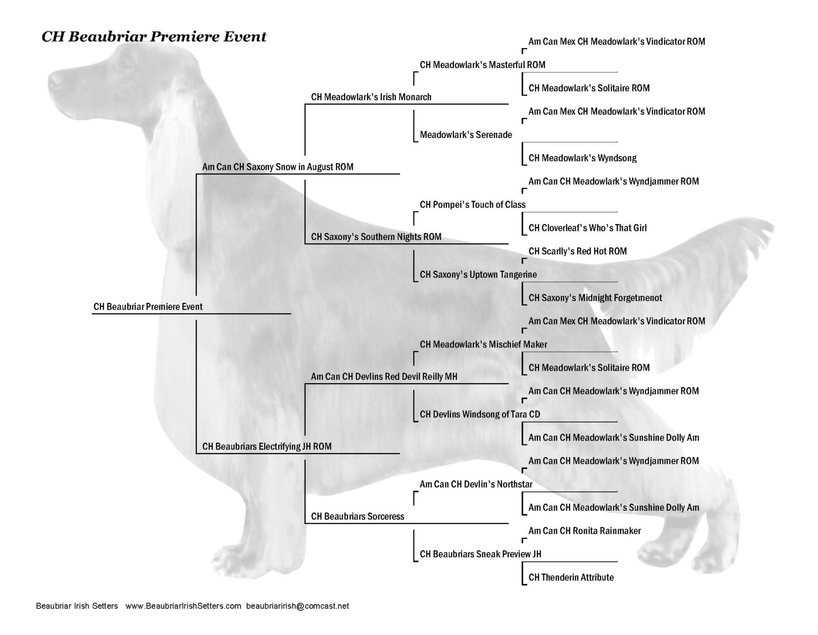 Eloise was our pride & joy. Part of the award winning Cable Litter. Our first home bred Best in Show winning Irish Setter. She was the top specialty winning Irish Setter bitch in history, exceeded only by her father Fonzie. She was the #1 Irish Setter All Systems in 2008 and the #6 Sporting Dog – acquiring over 20 group 1’s, over 41 group wins and 87 breed wins. She was an Award of Merit winner at the ISCA National in 2007, 2008 and 2009, as well as Westminster Kennel Club Award of Merit in 2008 & 2009. She was the winner of 7 Best in Shows and 39 Best in Specialty Shows! She was an exquisite animal with beautiful breed type, elegance, incredible reach & drive. She had body carriage & movement second to none carrying an extremely flat topline with her head & tail carried right where it should be. She was well angled, yet balanced with tremendous bone and substance for a bitch. She had beautiful chiseling that the breed lacks with accentuated, very expressive eye brow peaks that add to her lovely expression. She was a beautiful combination of her mother Emily and her father Fonzie. She had an incredible temperament, sweet as pie, but rollicking – gentle and loving. An absolute pleasure as a house dog. She is truly a sight to behold and must be seen in person to be truly appreciated. She had great showman attitude, enjoying being in the ring.