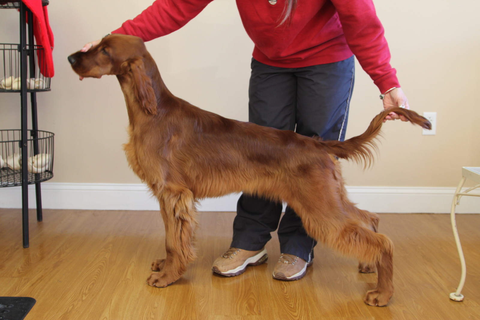 Gabby was bred by Erin & Shirley Callahan. She is out of Romeo, CH Beaubriars Secret Rendezvous bred to Secret, GCHS CH Beaubriar in Cahoots with Erin ROM. My beautiful little Gabby exudes breed type for days. A typy little bitch, long and fancy, beautiful headed with a very soft expression, lovely dark pigment, with big flashy side gait. She is well angled, matching front and rear and is as sweet as the day is long. Gabby loves climbing into your arms. She comes from a very successful litter, 7 puppies, 7 champions and an ROM for her mom Secret. She finished with multiple Best in Sweeps and Best Puppy in Specialty wins. She also won a huge junior bitch class at the 2014 ISCA National. Gabby has gone on to be one of the best producers I have had.